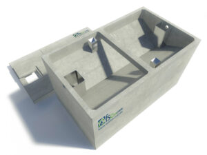 Le fosse settiche tipo IMHOFF sono prodotte dalla SINTINI S.r.l. in vasche prefabbricate monoblocco in cemento armato vibrato, a perfetta tenuta idraulica, anche senza trattamenti impermeabilizzanti. Esse hanno forma parallelepipeda ed al loro interno vengono realizzati, mediante l’installazione di tramogge in cls., due comparti: uno di sedimentazione e l’altro di digestione; sono inclusi, inoltre, i deflettori paraschiuma, le guide per prelievo fanghi ed esalazione gas. Le fosse IMHOFF rappresentano il primo stadio di depurazione delle acque di scarico previsto dalla normativa vigente e sono dimensionate in modo da avere volumi minimi di sedimentazione pari a 40-50 lt. x AE, volumi di digestione di 160-200 lt. x AE e volumi di accumulo delle sostanze flottanti di 30 lt. x AE.